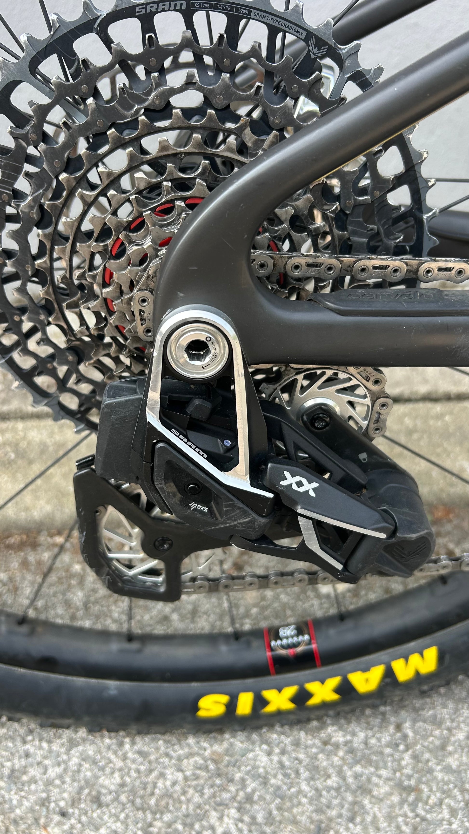 Transmission : SRAM XX Eagle (groupe haut de gamme 12 vitesses, électronique sans fil)
