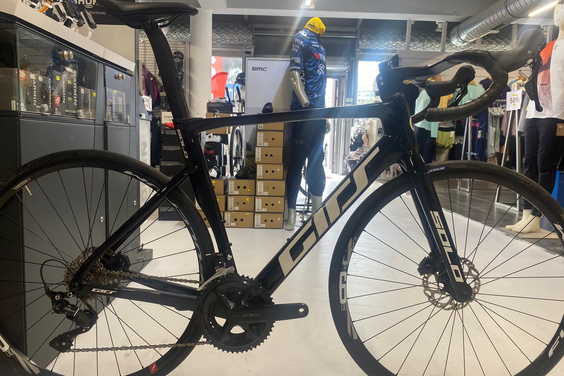 Le Girs Solo, équipé du groupe Shimano 105 et des roues Fulcrum Racing 600, est un vélo polyvalent conçu pour offrir un excellent rapport performance/prix. Son cadre en carbone assure un équilibre parfait entre rigidité et confort, idéal pour les longues sorties et les entraînements intensifs.